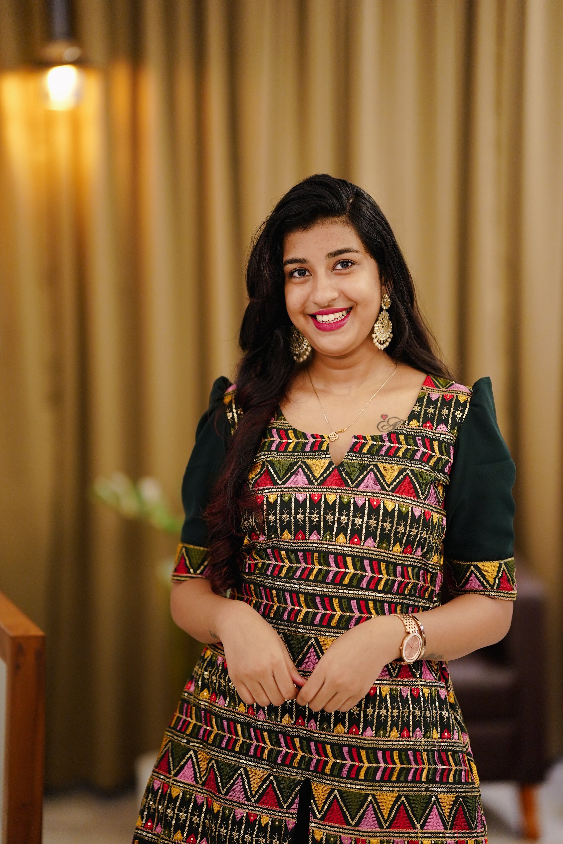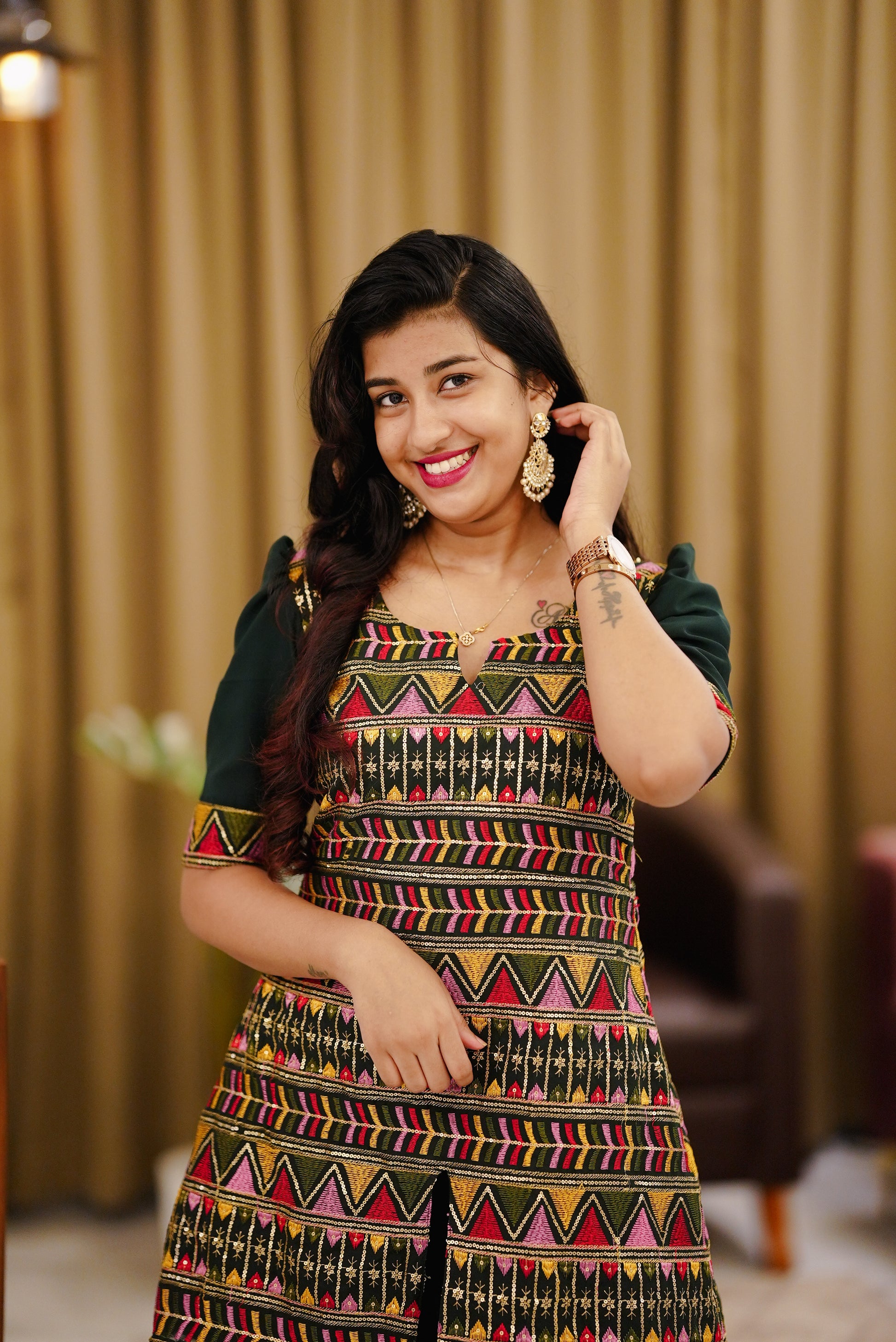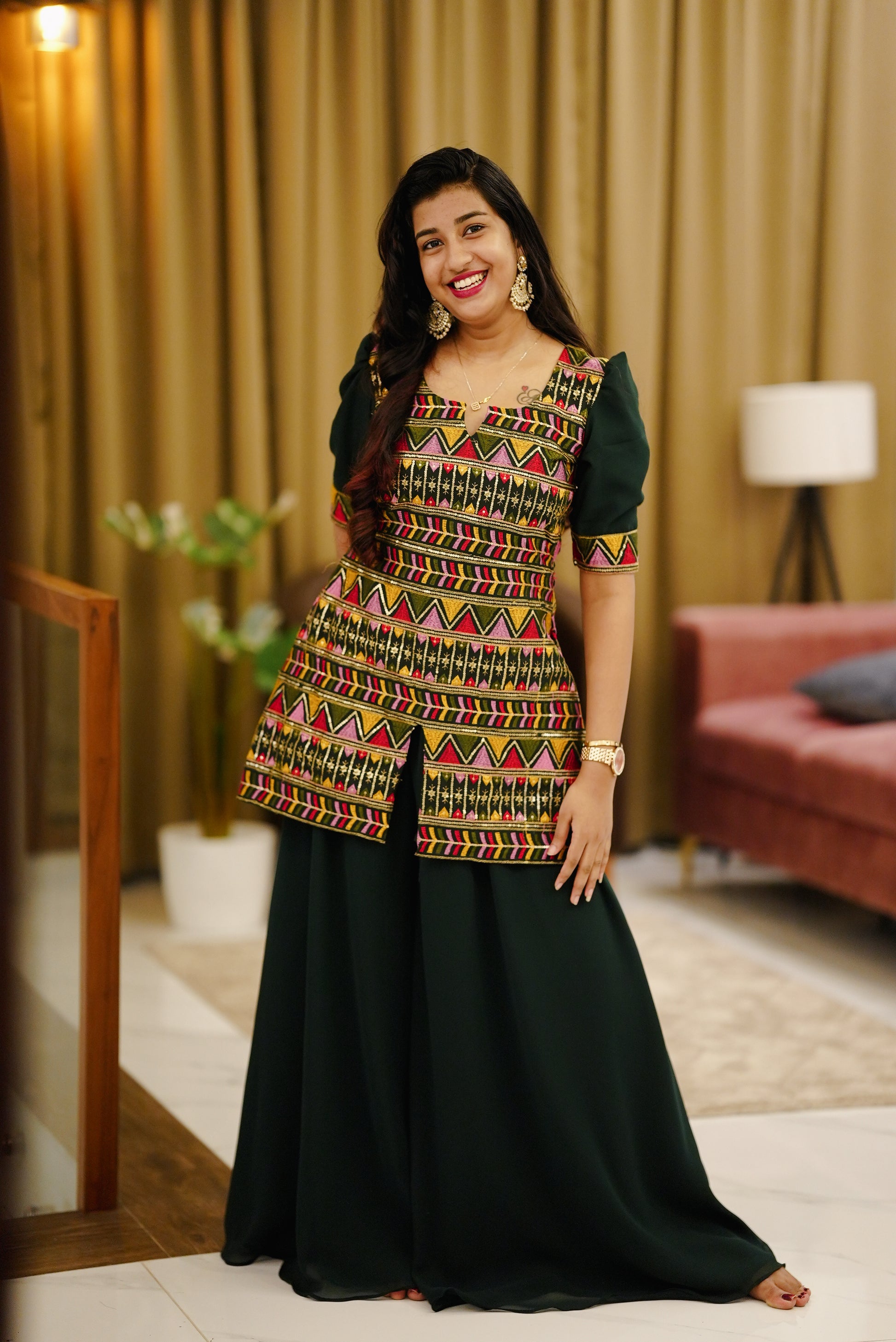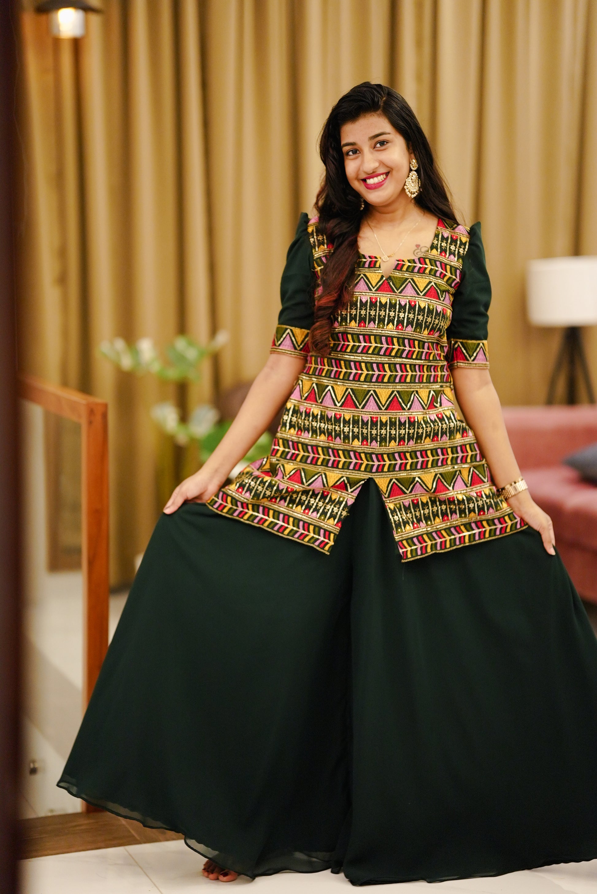 Dark green Heavy sequence and embroidery worked georgette top with dark green flared georgette palazzo.