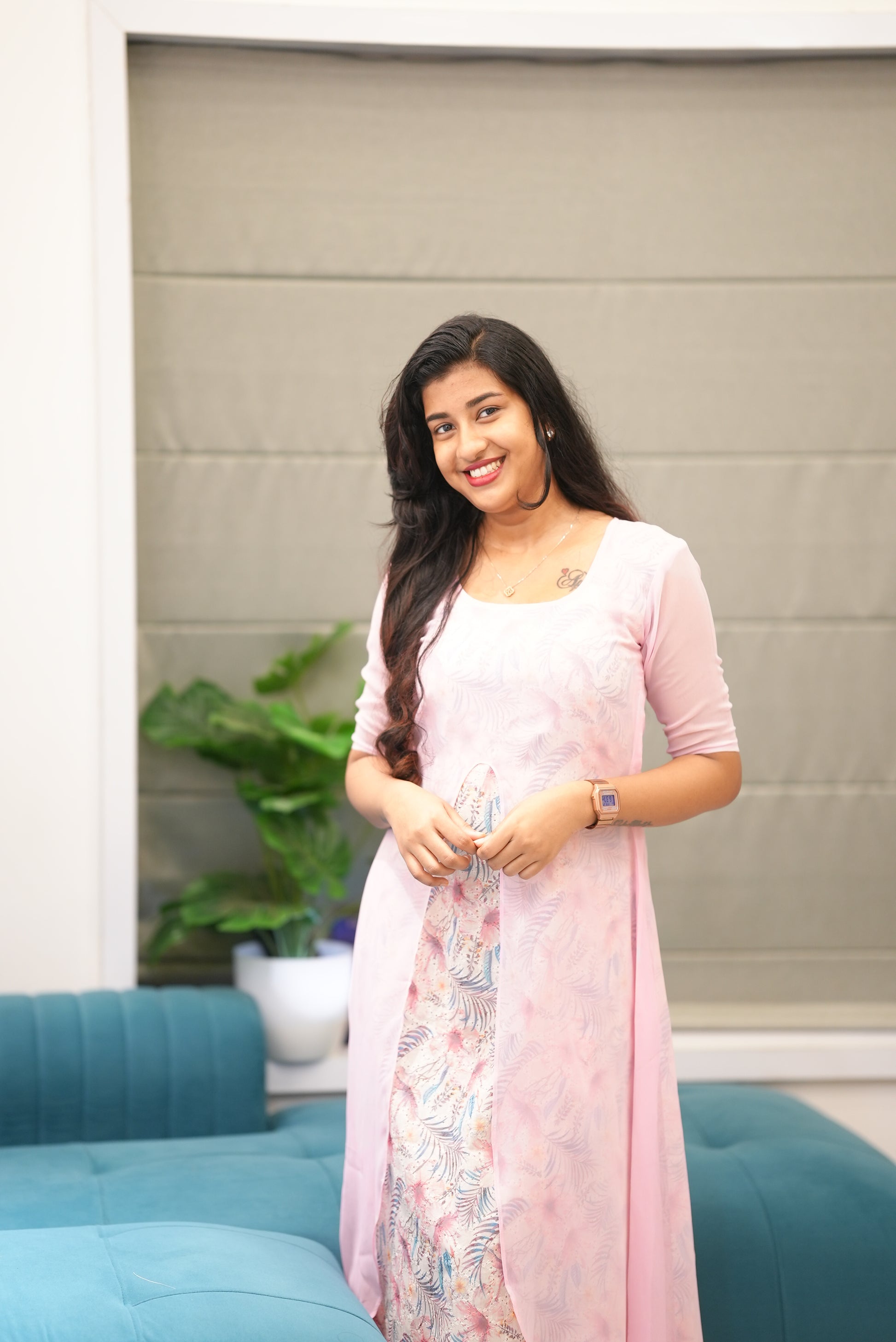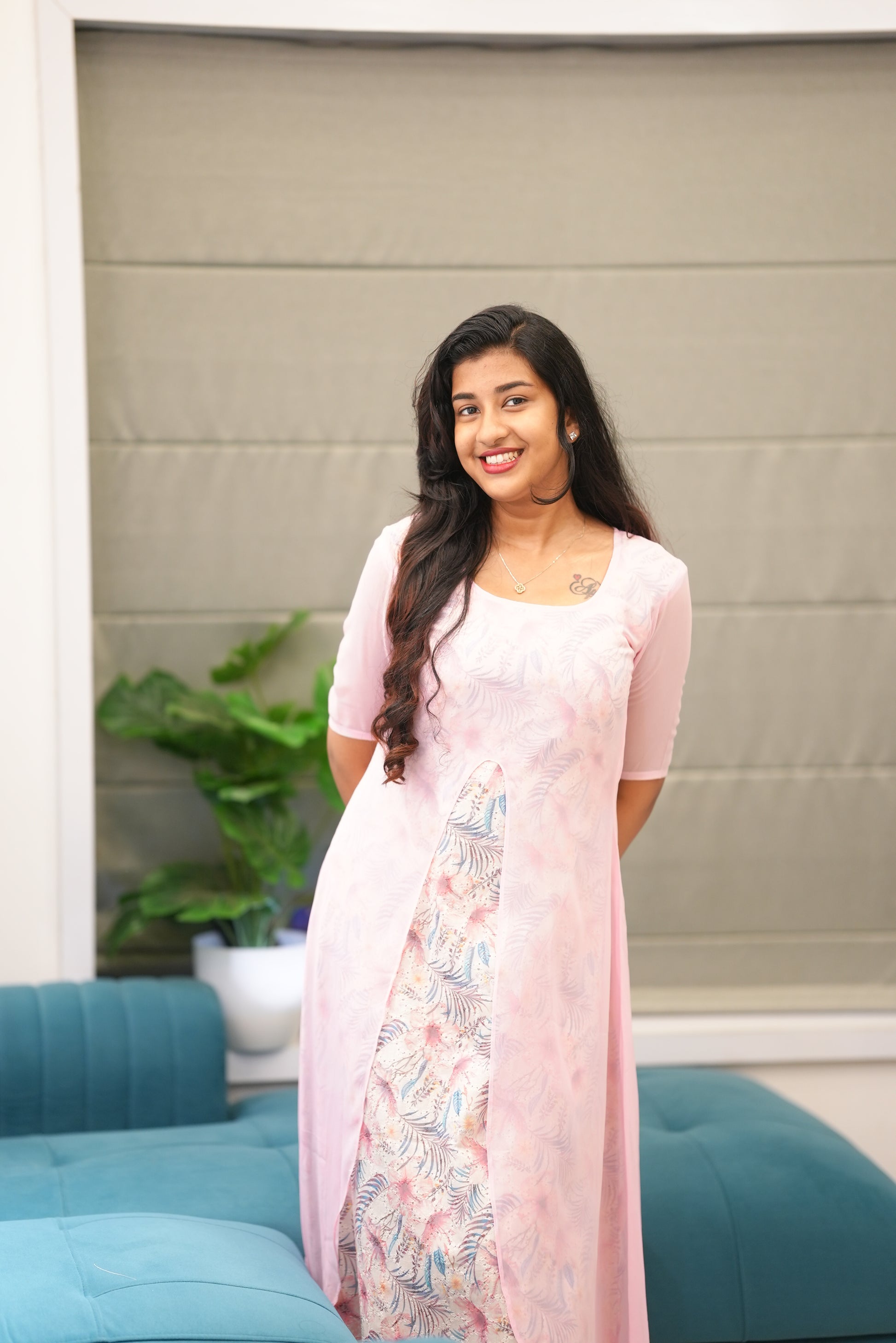 The HAKOBA GEORGETTE COMBO features a beautifully printed Hakoba top with a comfortable lining, complemented by a separate pastel baby pink georgette overcoat. This elegant combination offers lightweight layering with a refined look. Customizable sleeves add a personalized touch to suit your style preferences, making it a versatile and expert choice for sophisticated dressing.