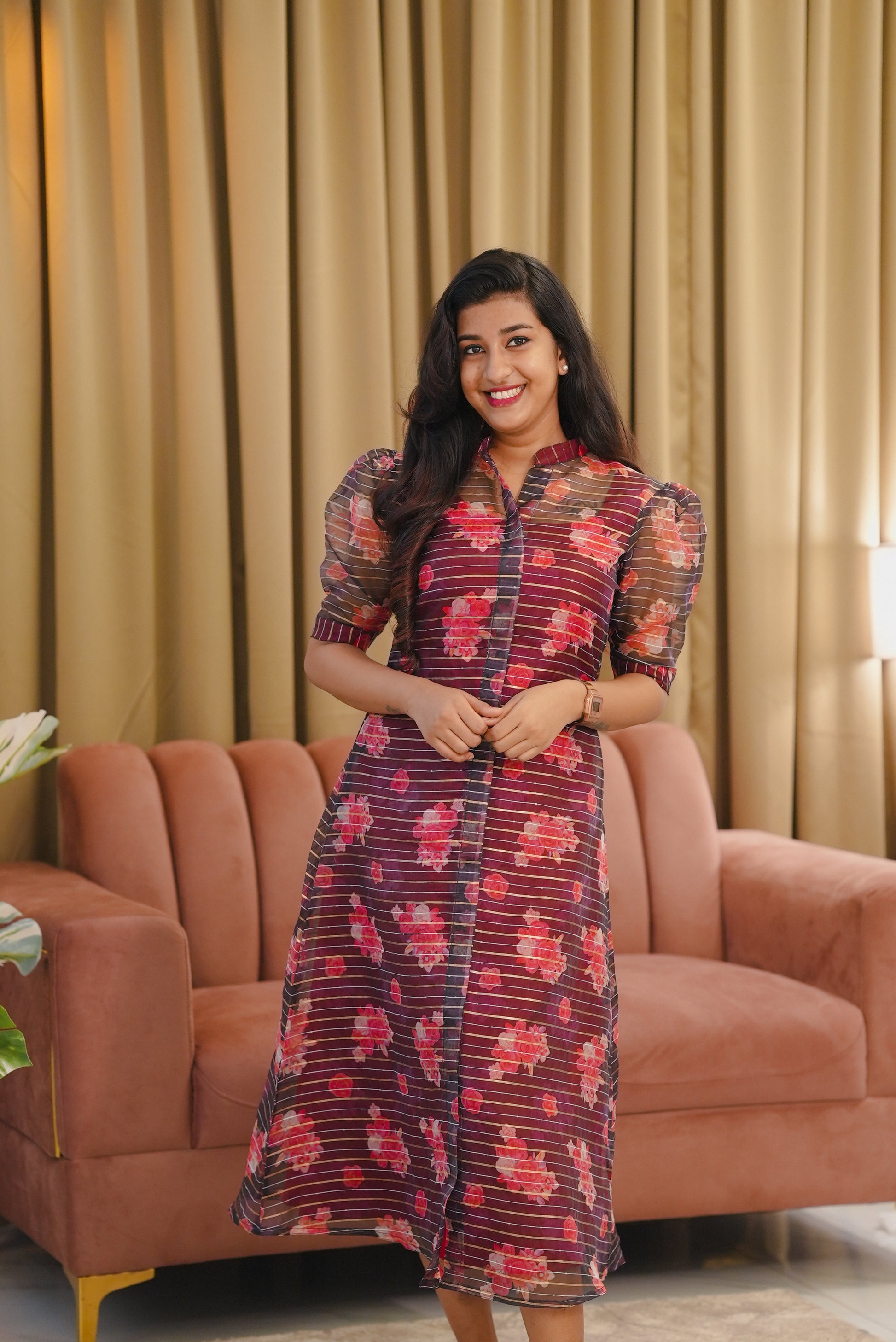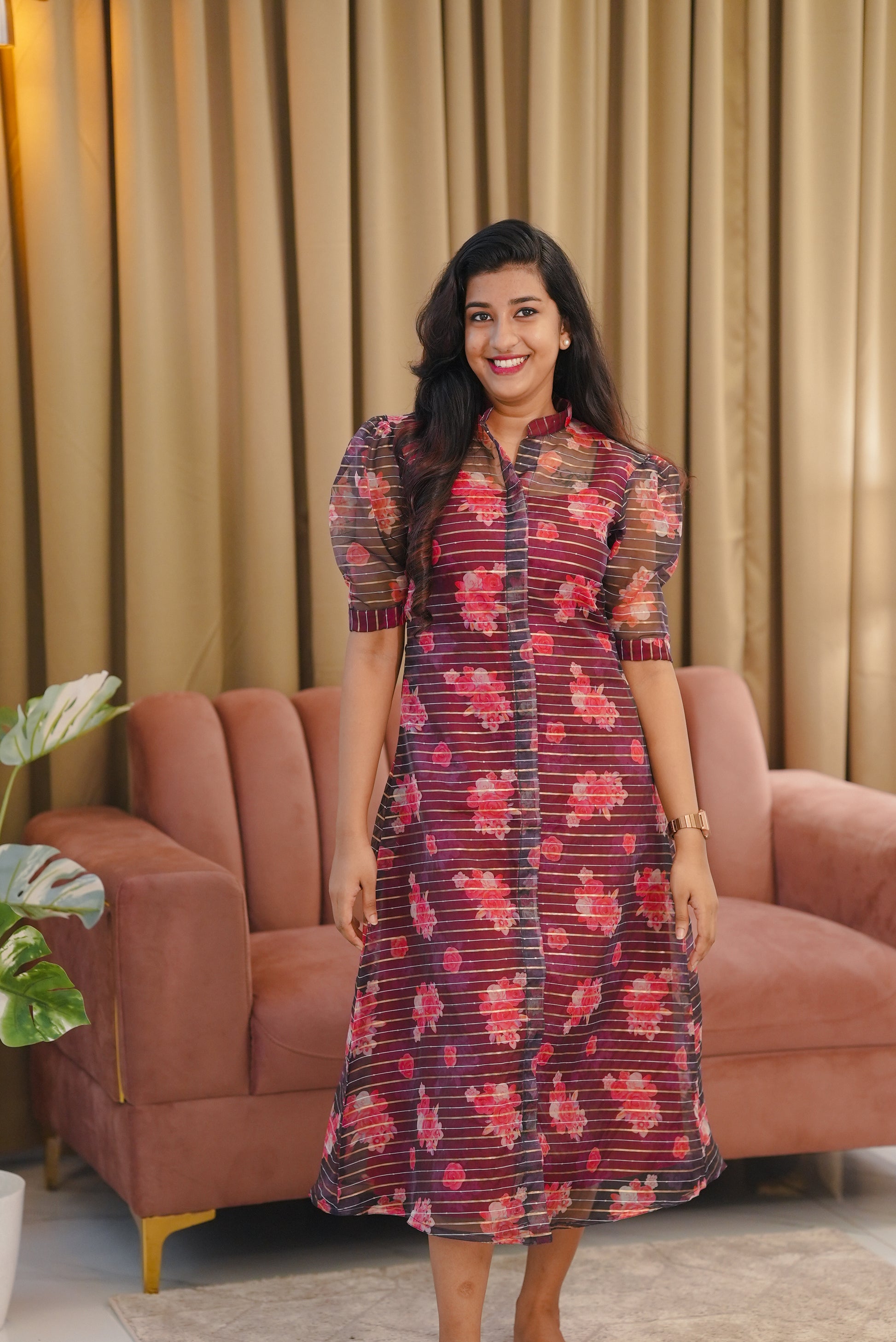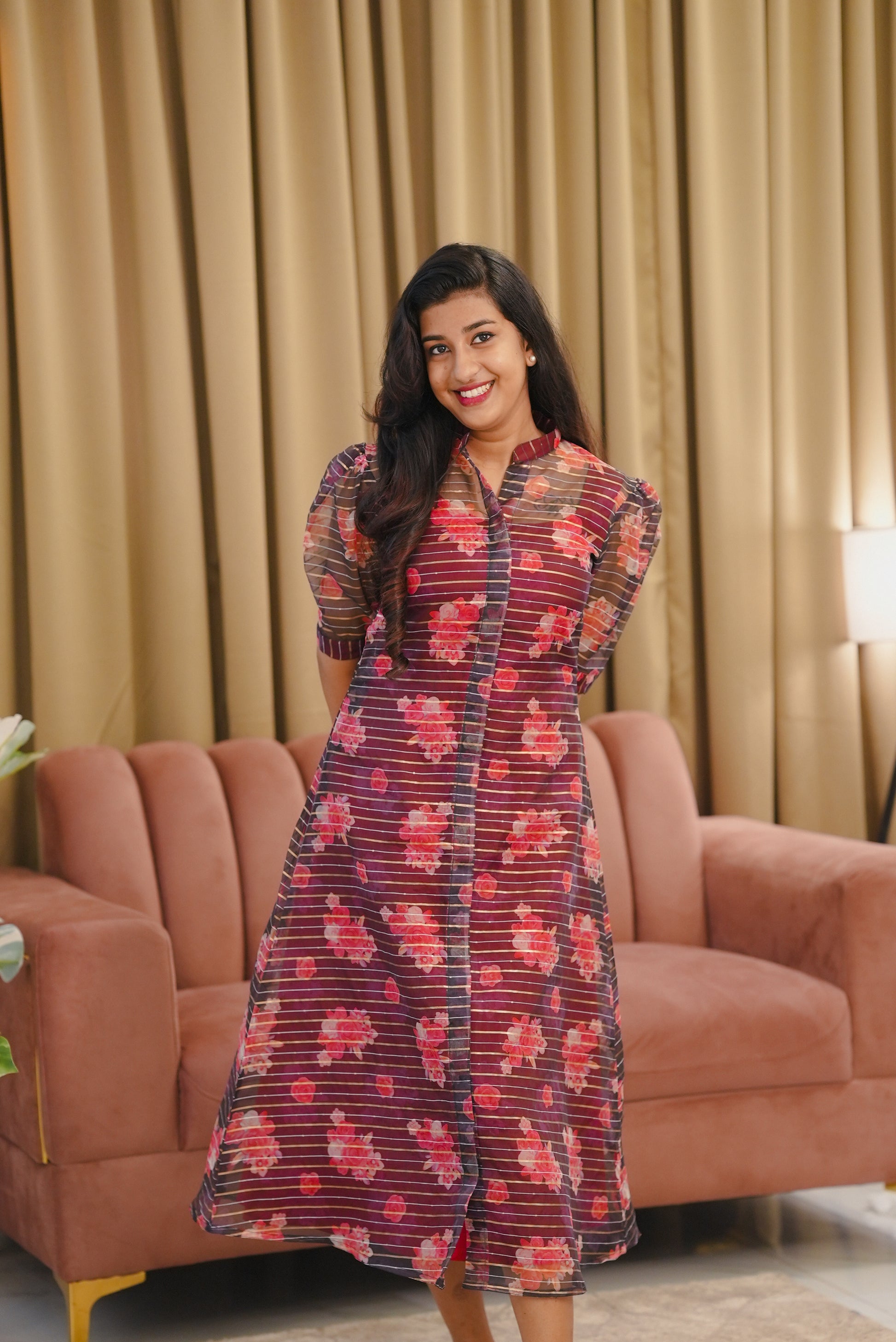 Organza floral Dress with Crepe Inner top