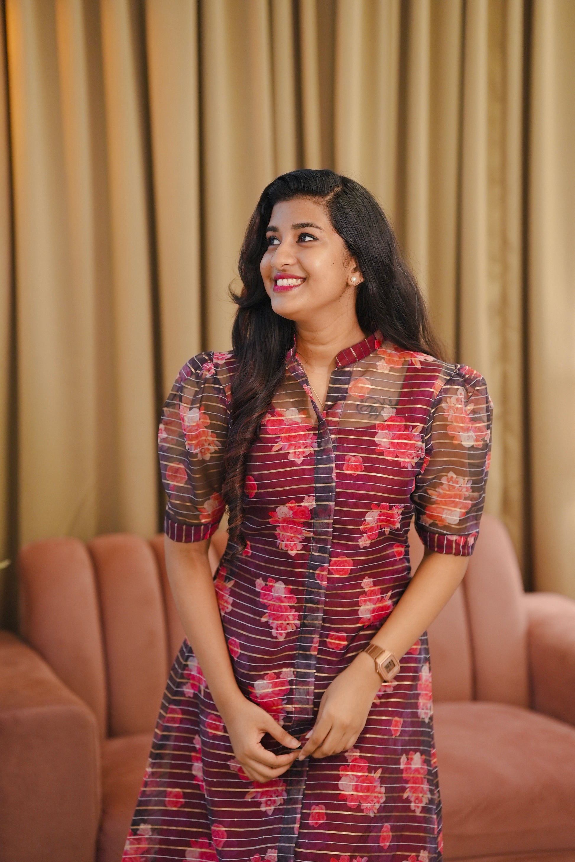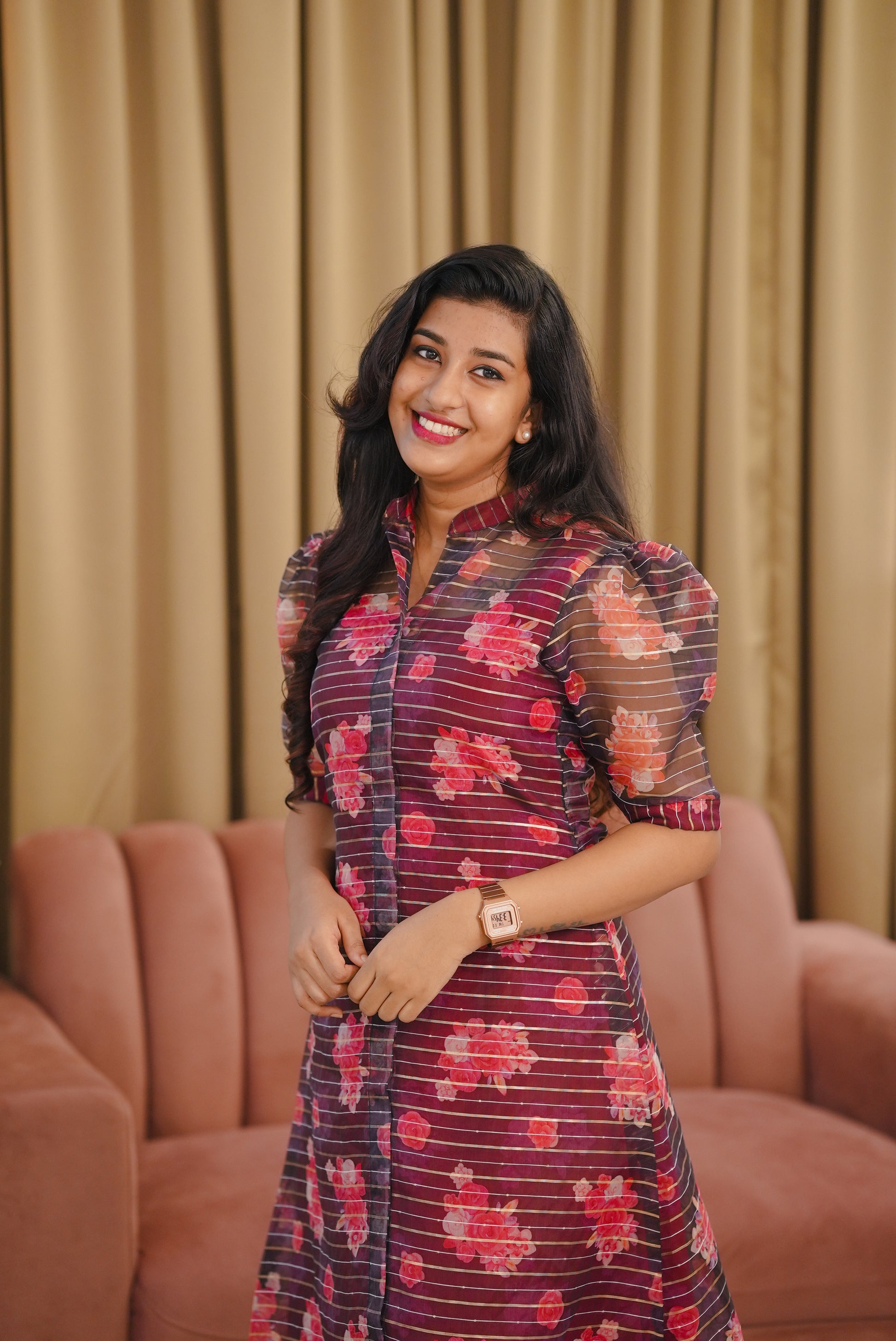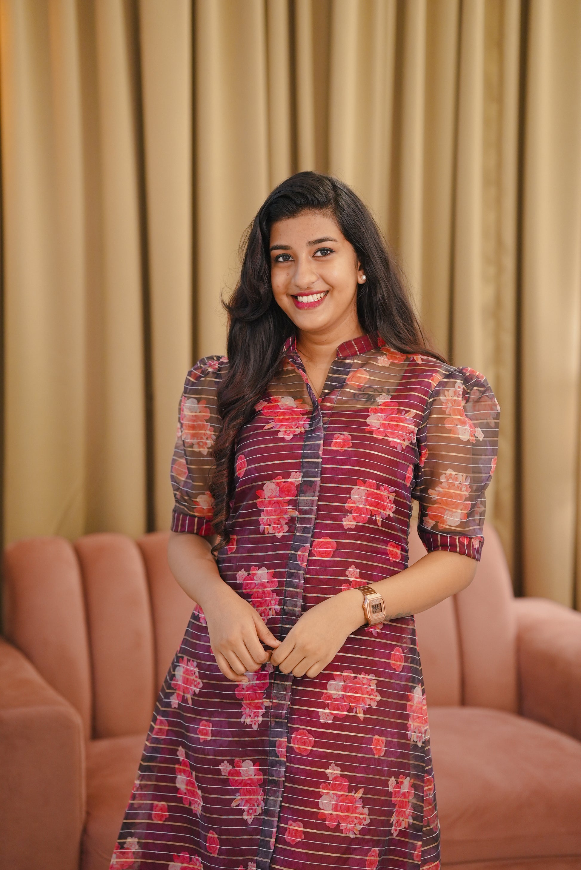 Organza floral Dress with Crepe Inner top